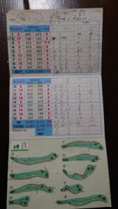 山梨県のウッドストックカントリークラブでラウンド。パー71(Out35、In36)。46-49で95。パット数はいずれも19。一緒に回っているメンバーが珍しい。N澤くん103、O月くん120、Rスケ122、となっている。4月には結婚したあとですが、テニス部仲間とは相変わらずゴルフやってるようです。コンペとして他のメンバーもいたはずで、自分はハンディ8(少ない!)、N澤は22、よってそれぞれ87、81で、結果N澤くんより順位は下だったようです。