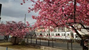 ヴィクトリア行く際に見かけた河津桜を撮影するため、車を停めて「電車が見える公園」へ。河津桜満開でした。2本の木で微妙に花の色が違う。同じ河津桜なのか?? その後、買い忘れた缶チューハイなどを買いにマイバスケットに寄り戻る。